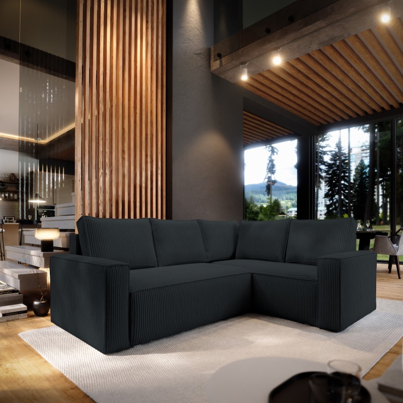 Masseno Narożnik ESTANO z funkcją spania i pojemnikiem na pościel Narozniki L, Rozkładana sofa - Czarny, POSO 135