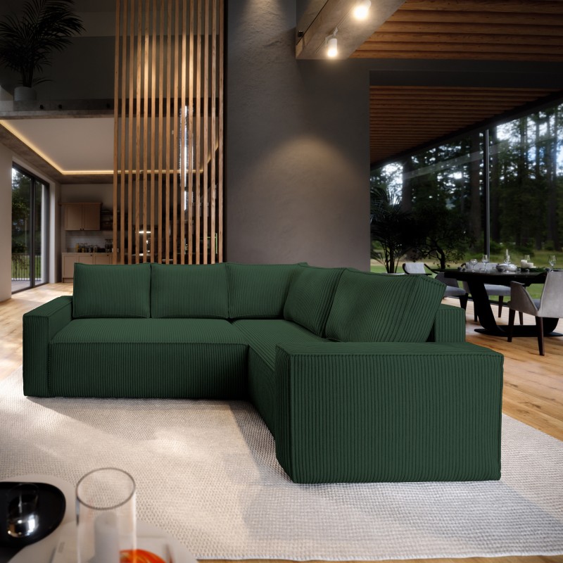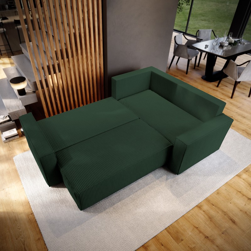 Masseno Narożnik ESTANO z funkcją spania i pojemnikiem na pościel Narozniki L, Rozkładana sofa - Zielony, POSO 14