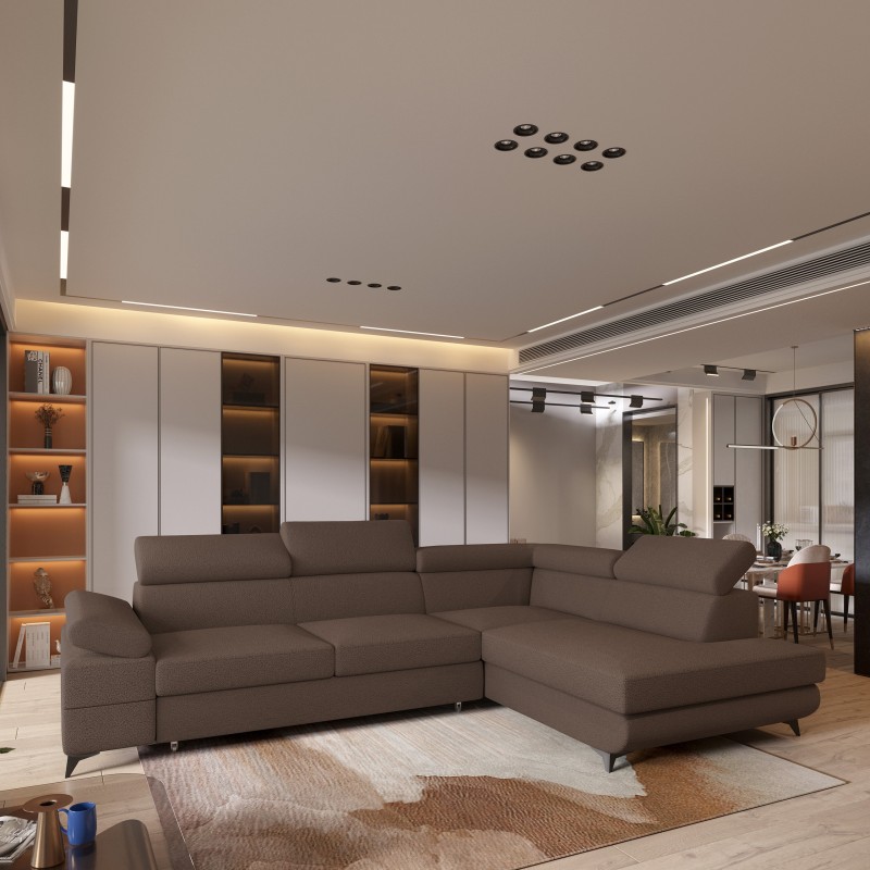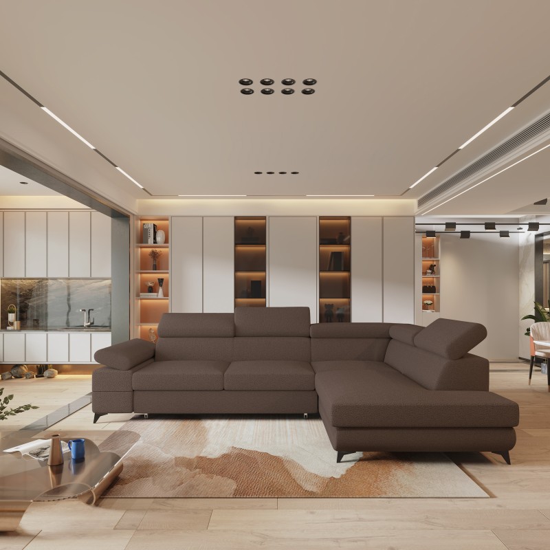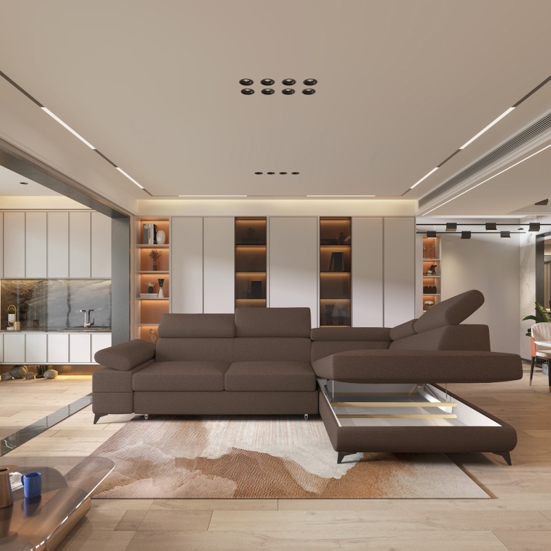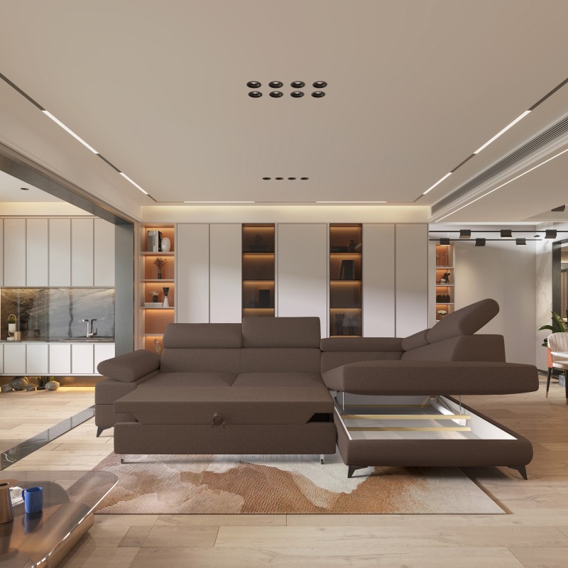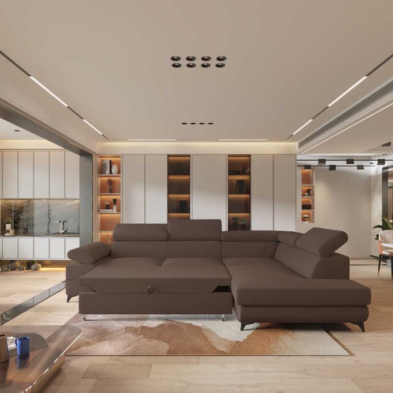 Masseno Narożnik FAVIEN z funkcją spania i pojemnikiem na pościel Narozniki L, Rozkładana sofa - Brązowy, QUELLE 25