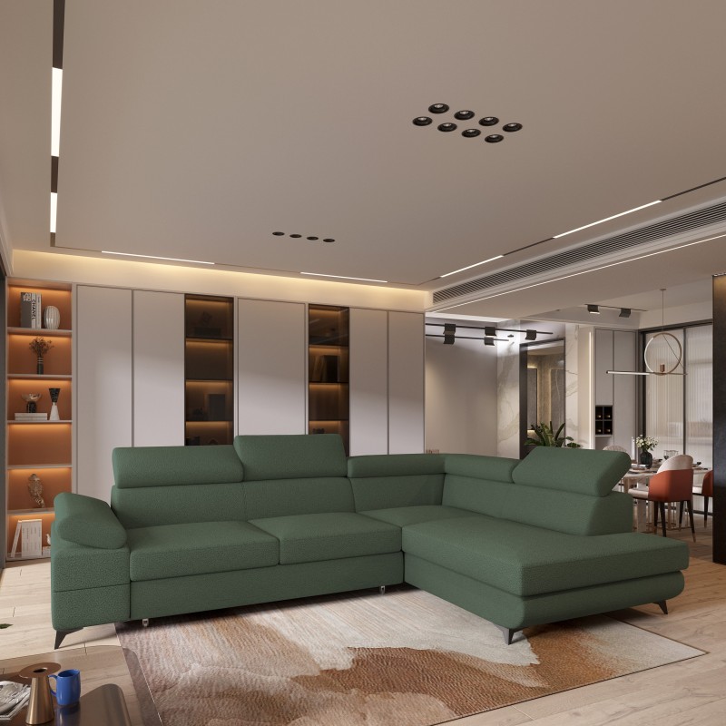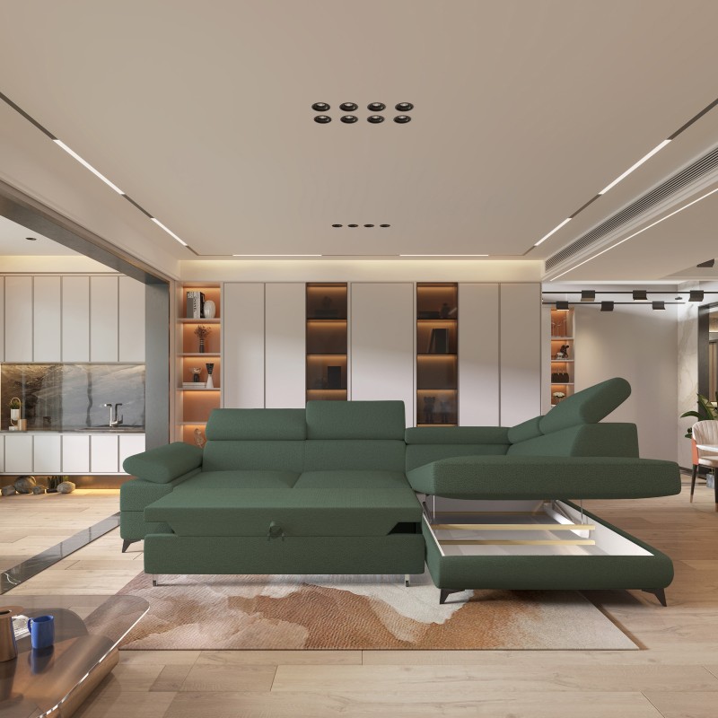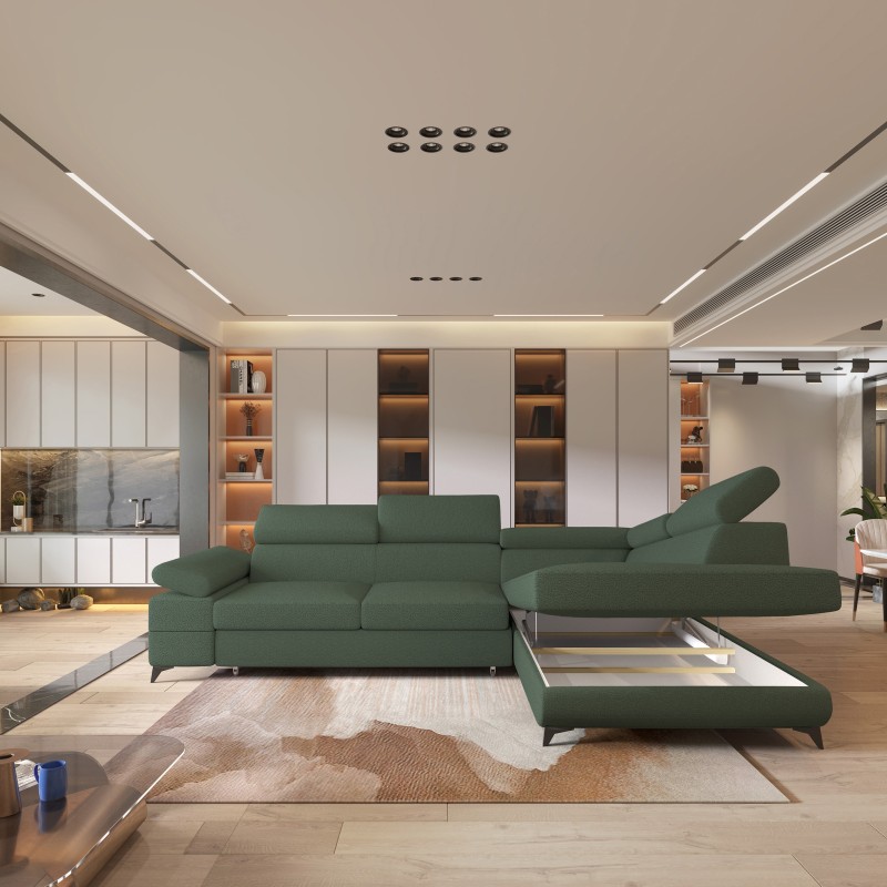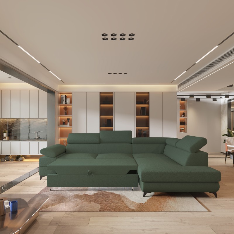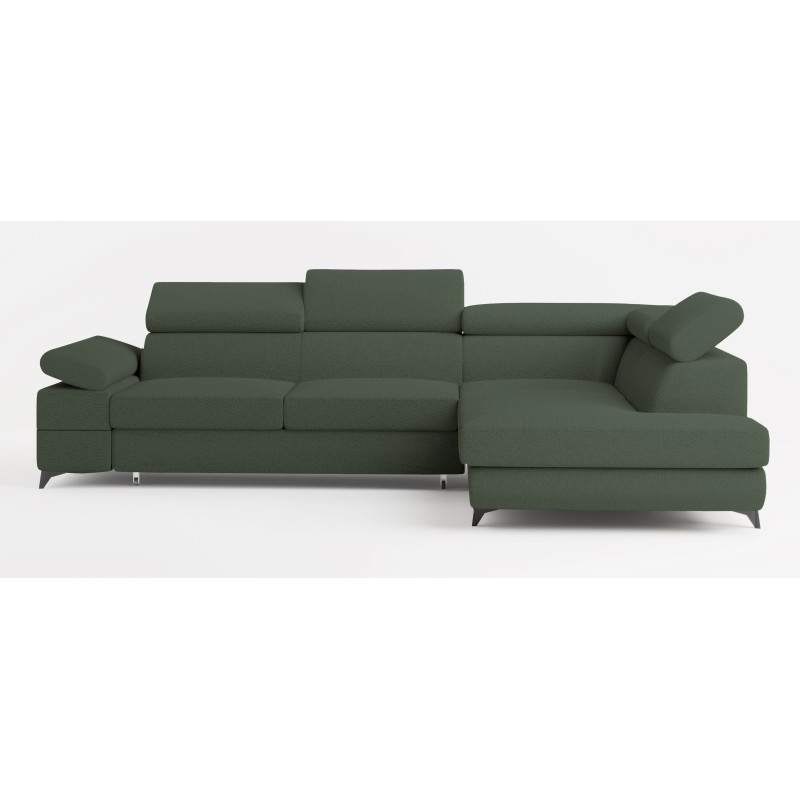 Masseno Narożnik FAVIEN z funkcją spania i pojemnikiem na pościel Narozniki L, Rozkładana sofa - Zielony, QUELLE 37
