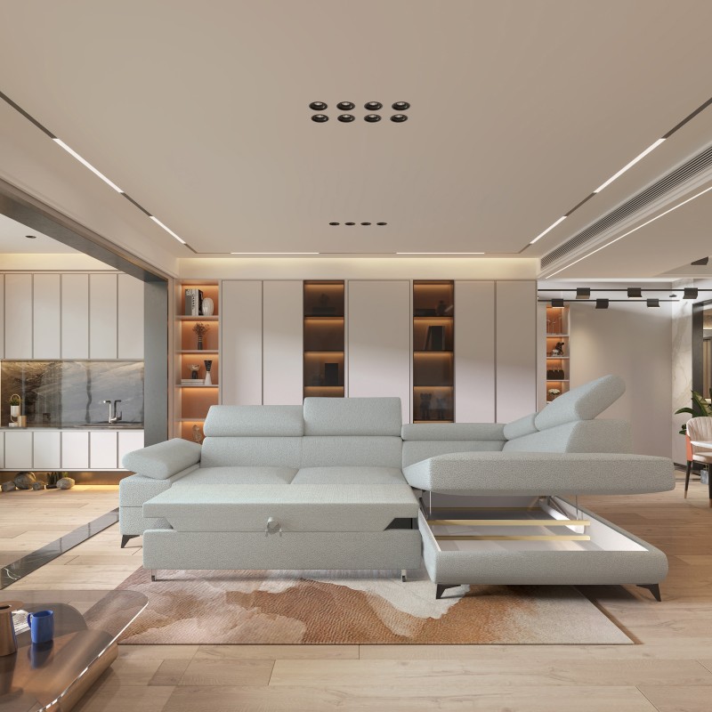 Minimalizm spotyka funkcjonalność – narożnik FAVIEN w tkaninie Quelle to propozycja dla tych, którzy szukają nowoczesnych rozwiązań do codziennego życia. Ten model doskonale sprawdzi się w salonie, w którym estetyka idzie w parze z komfortem użytkowania.
