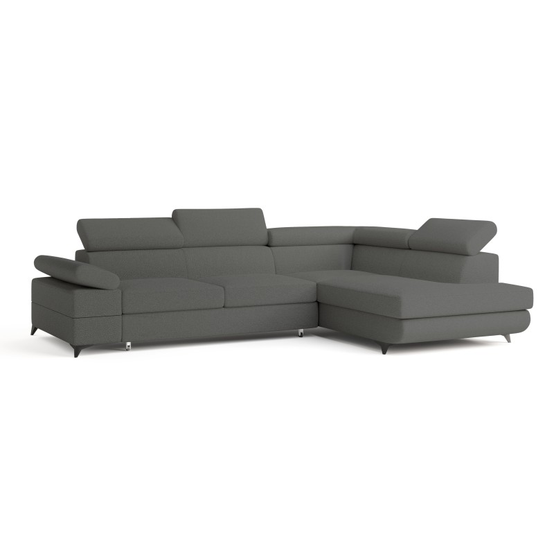 Masseno Narożnik FAVIEN z funkcją spania i pojemnikiem na pościel Narozniki L, Rozkładana sofa - Szary, QUELLE 92