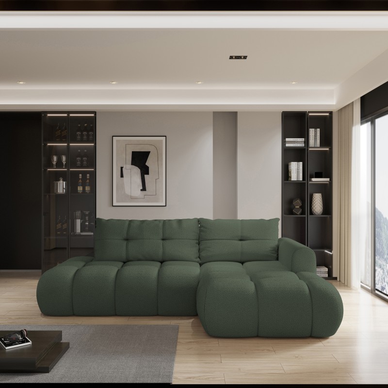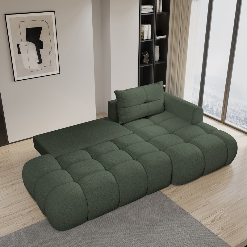 Masseno Narożnik FLUMA z funkcją spania i pojemnikiem na pościel Narozniki L, Rozkładana sofa - Zielony, QUELLE 37