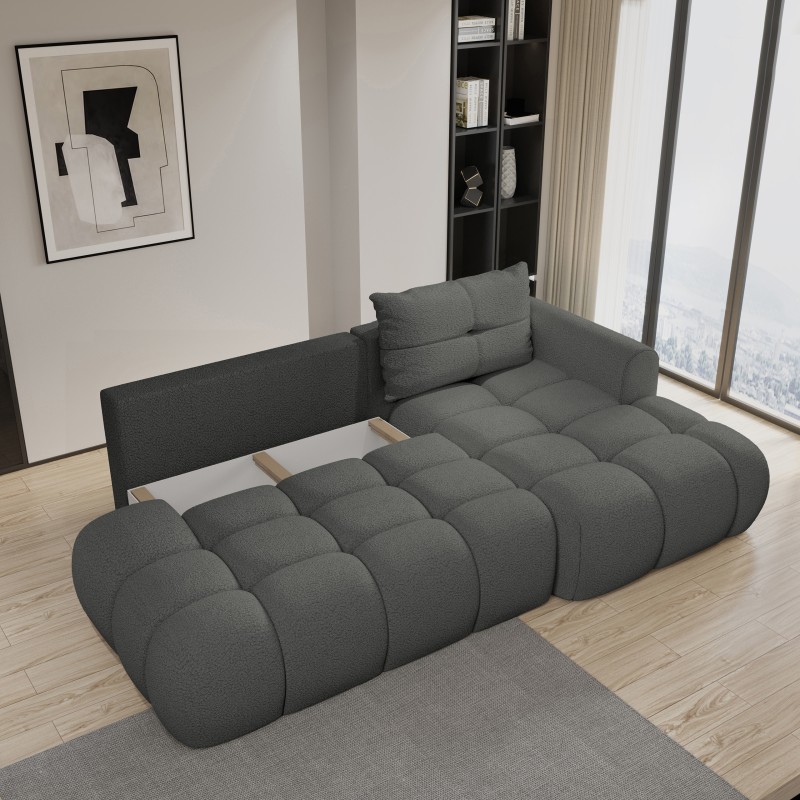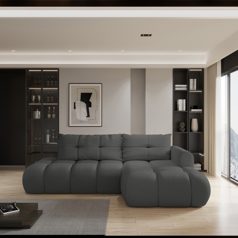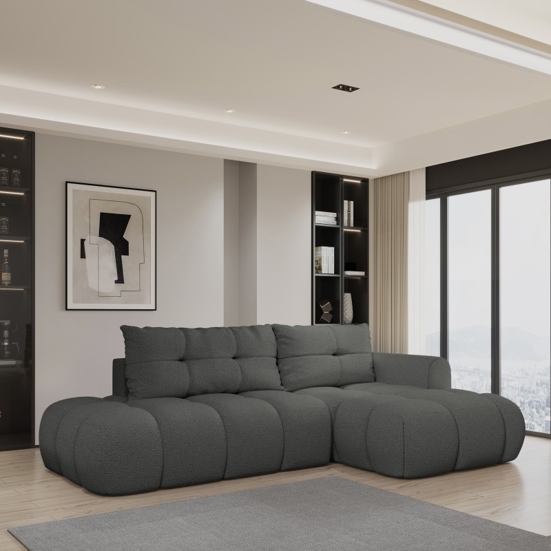 Narożnik FLUMA – miękkość boucle w nowoczesnym wydaniu