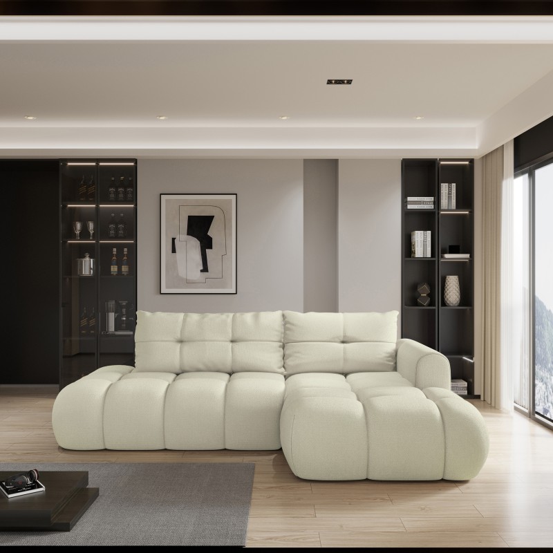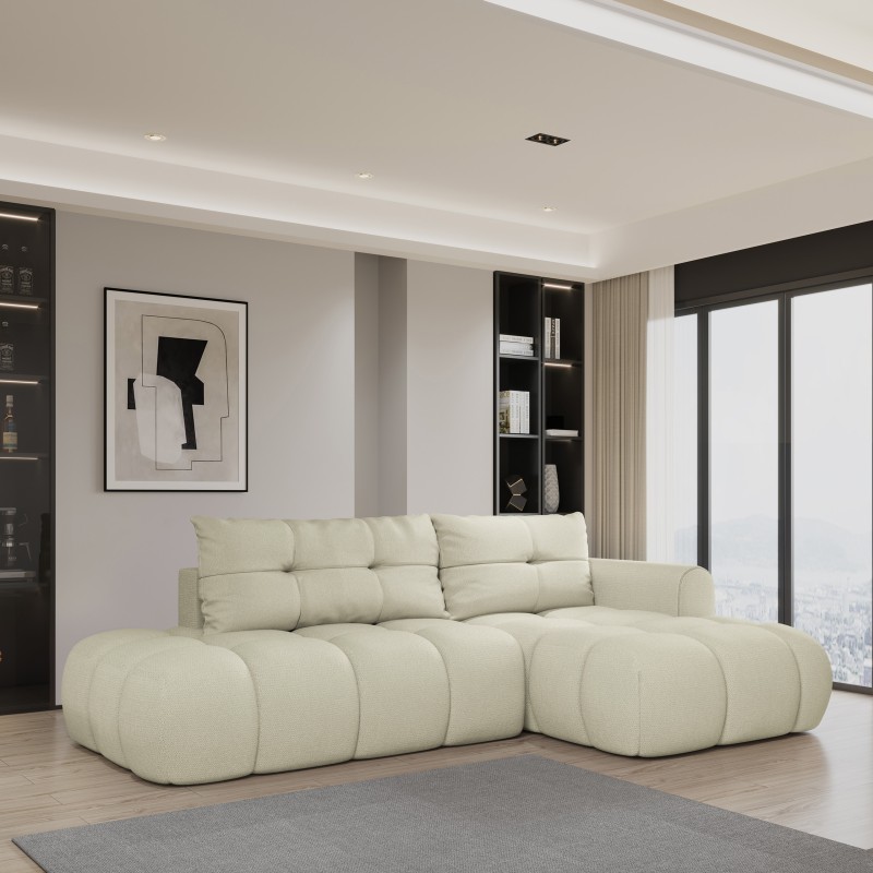 Masseno Narożnik FLUMA z funkcją spania i pojemnikiem na pościel Narozniki L, Rozkładana sofa - Kremowy, SORO 02