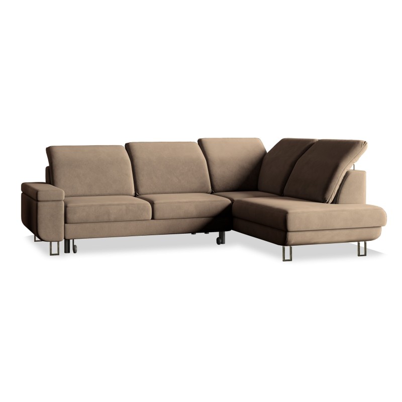 Masseno Narożnik LERMA z funkcją spania i pojemnikiem na pościel Narozniki L, Rozkładana sofa - Beżowy, MONOLITH 09