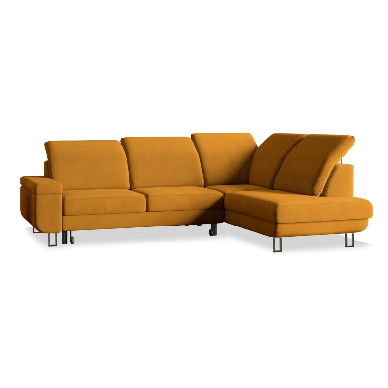 Masseno Narożnik LERMA z funkcją spania i pojemnikiem na pościel Narozniki L, Rozkładana sofa - Żółty, MONOLITH 48