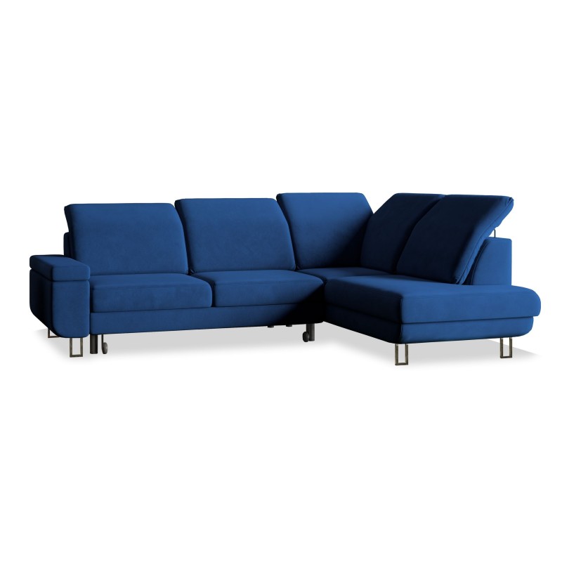 Masseno Narożnik LERMA z funkcją spania i pojemnikiem na pościel Narozniki L, Rozkładana sofa - Niebieski, MONOLITH 77