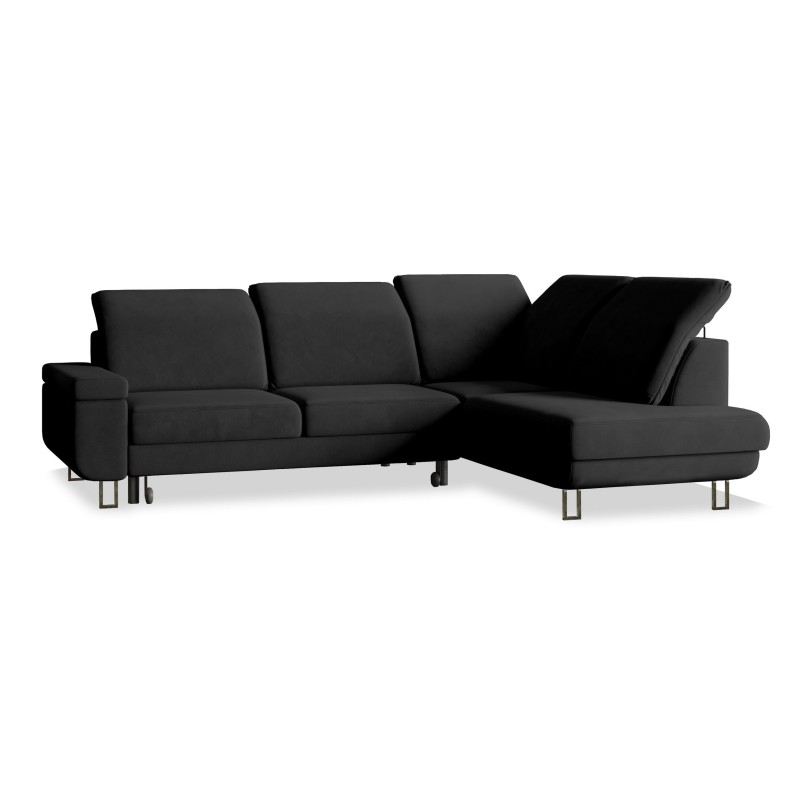 Masseno Narożnik LERMA z funkcją spania i pojemnikiem na pościel Narozniki L, Rozkładana sofa - Czarny, MONOLITH 95