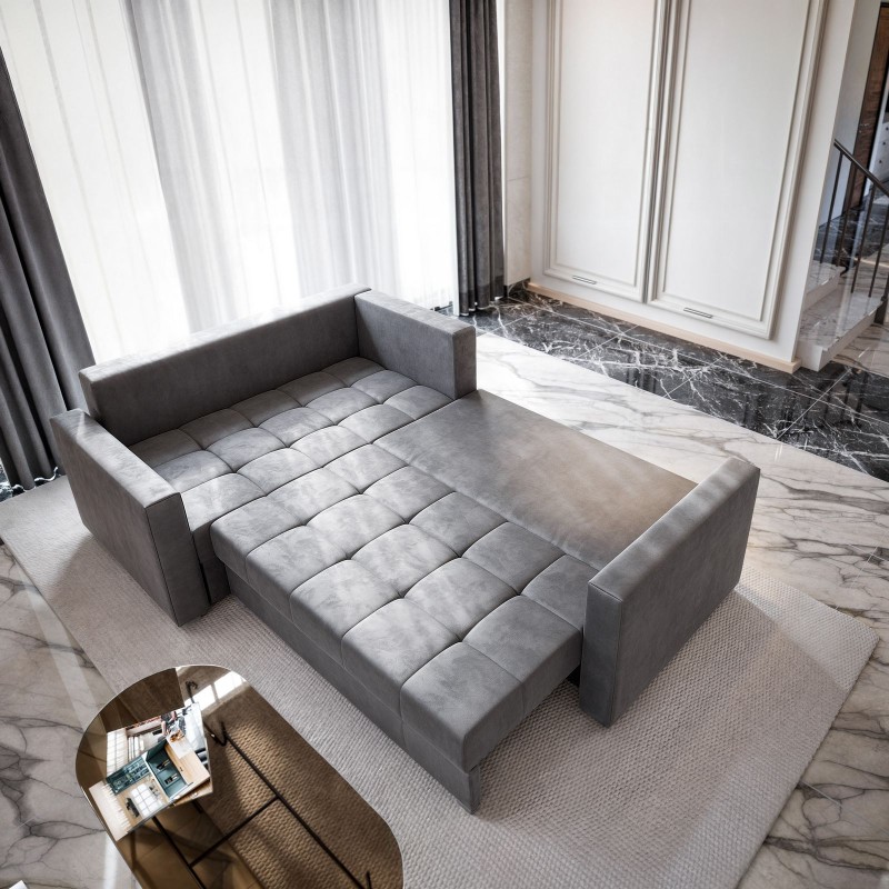 Masseno Narożnik LIRENO z funkcją spania i pojemnikiem na pościel Narozniki L, Rozkładana sofa - Czarny, KRONOS 07