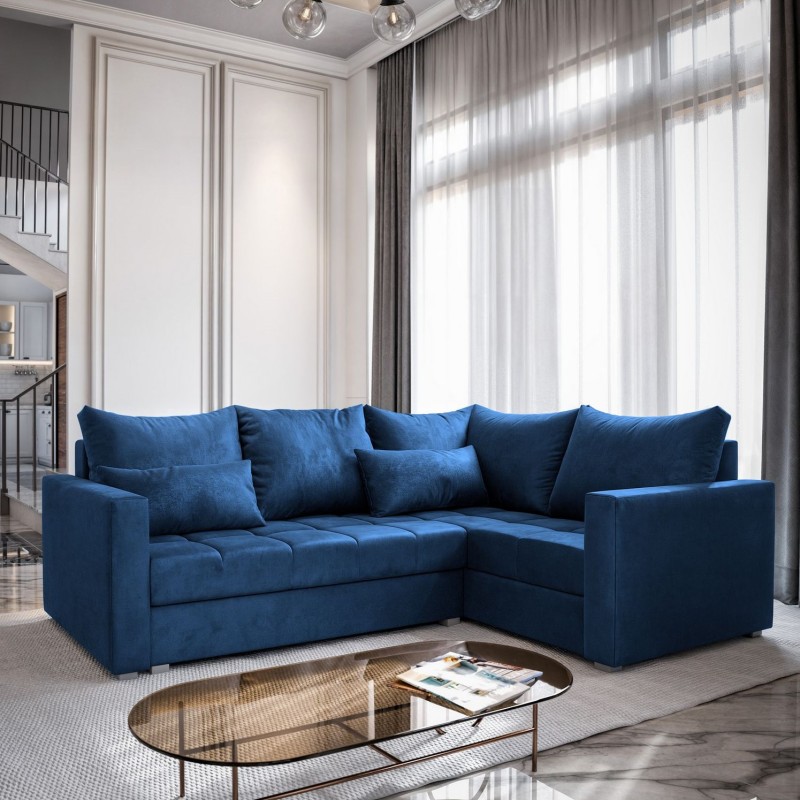 Masseno Narożnik LIRENO z funkcją spania i pojemnikiem na pościel Narozniki L, Rozkładana sofa - Niebieski, KRONOS 09
