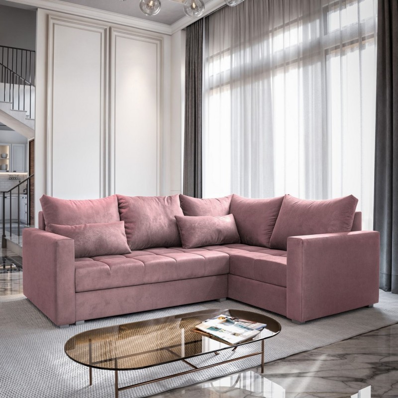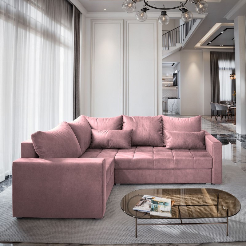Masseno Narożnik LIRENO z funkcją spania i pojemnikiem na pościel Narozniki L, Rozkładana sofa - Pudrowy róż, KRONOS 27