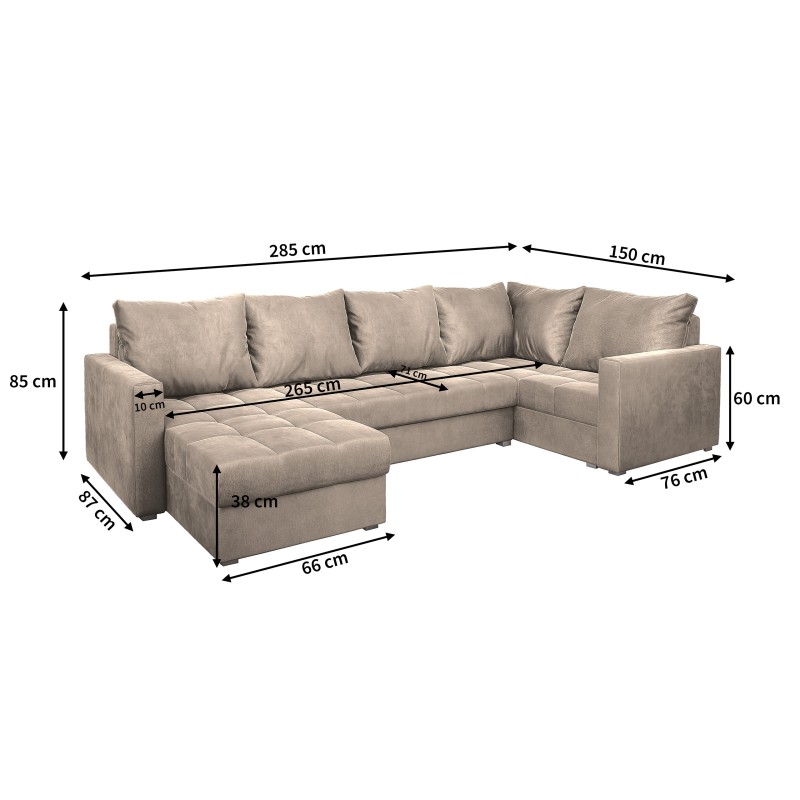 Masseno Narożnik LORIVO z funkcją spania i pojemnikiem na pościel Narozniki U, Rozkładana sofa - Brązowy, KRONOS 06