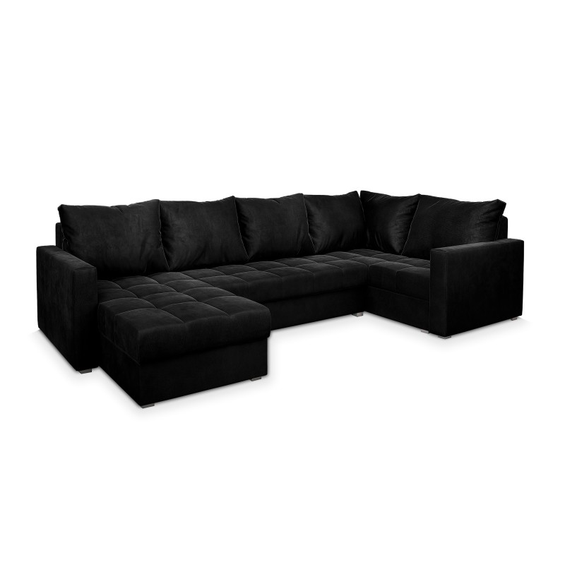 Masseno Narożnik LORIVO z funkcją spania i pojemnikiem na pościel Narozniki U, Rozkładana sofa - Czarny, KRONOS 07