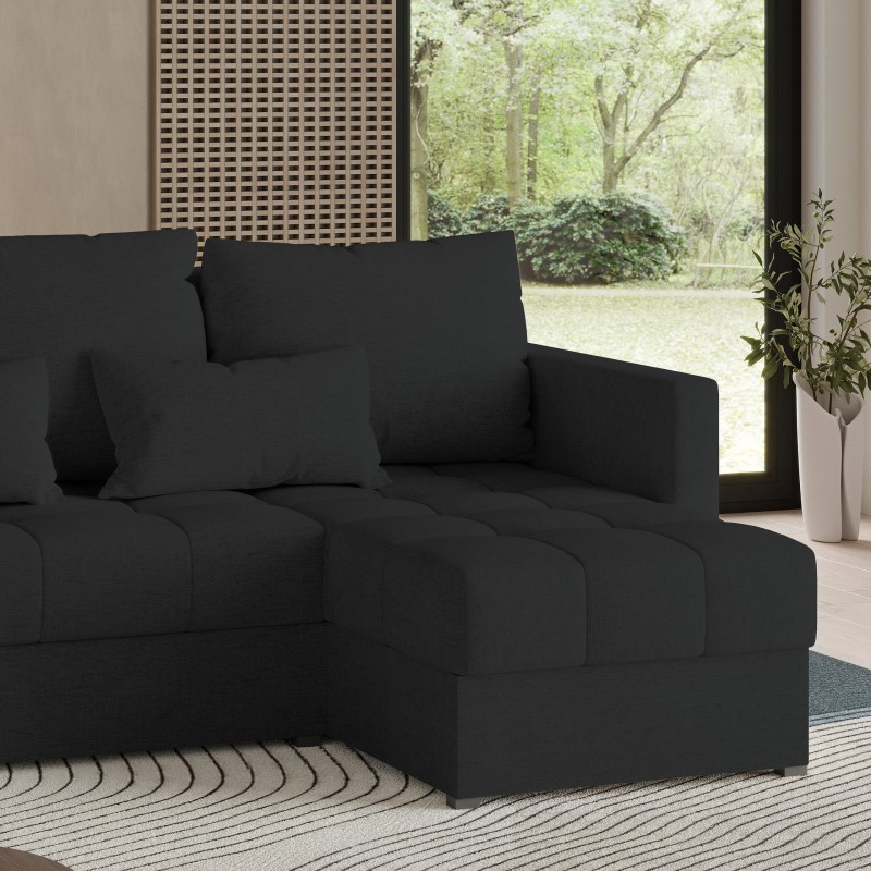 Masseno Narożnik LUMARI z funkcją spania i pojemnikiem na pościel Narozniki L, Rozkładana sofa - Czarny, NEVE 100