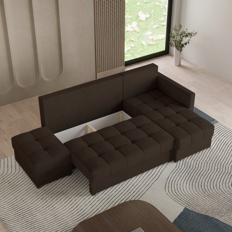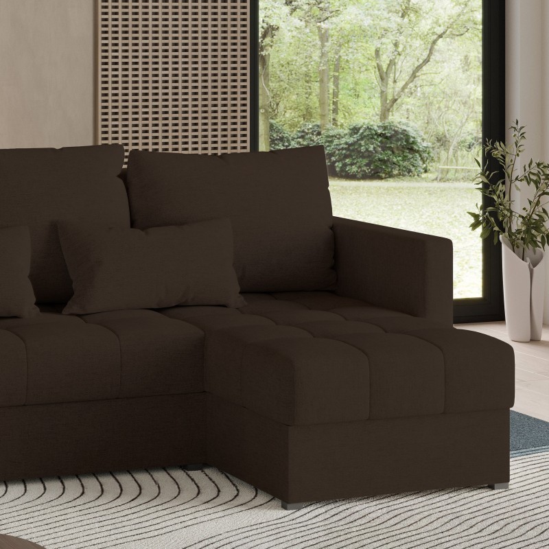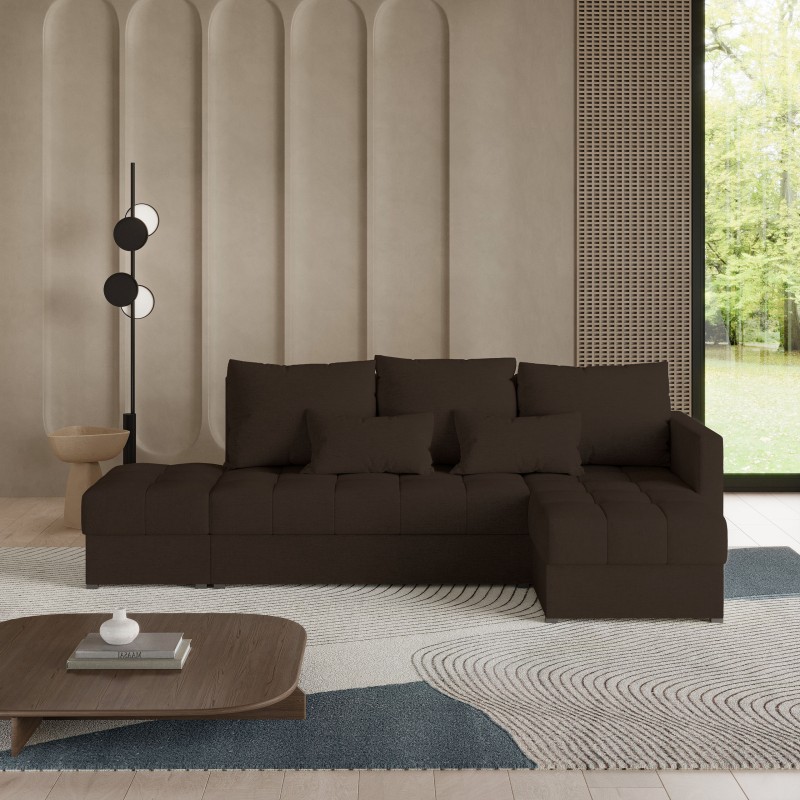 Masseno Narożnik LUMARI z funkcją spania i pojemnikiem na pościel Narozniki L, Rozkładana sofa - Brązowy, NEVE 28