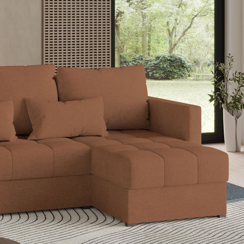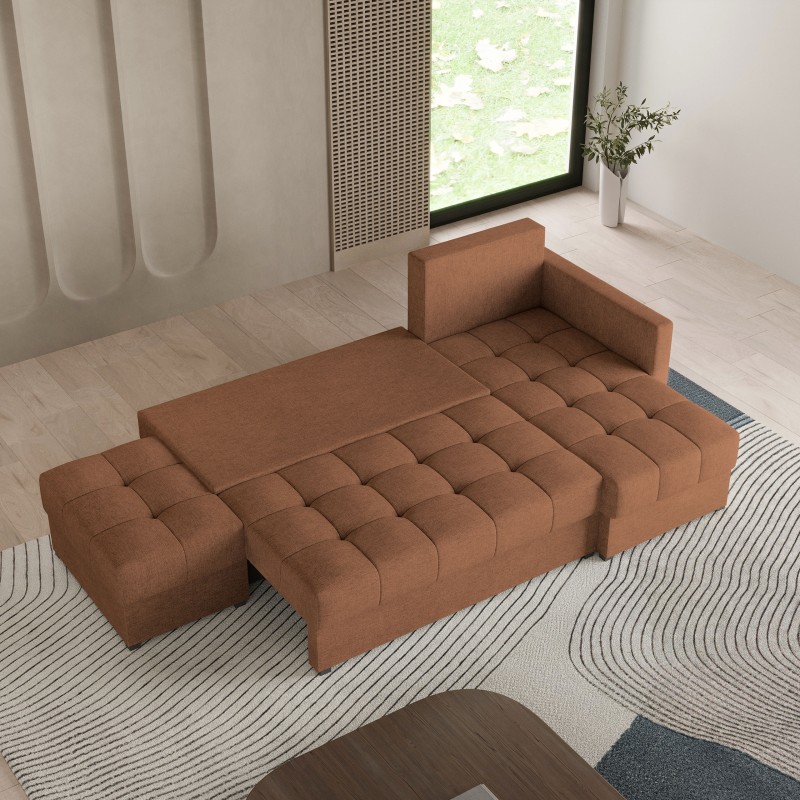 Masseno Narożnik LUMARI z funkcją spania i pojemnikiem na pościel Narozniki L, Rozkładana sofa - Miedziany, NEVE 52