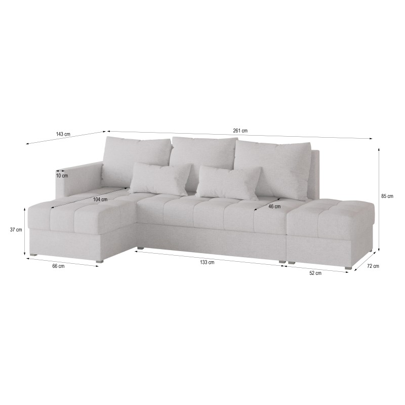 Dzięki możliwości wyboru wersji narożnika – lewostronnej lub prawostronnej – LUMARI łatwo dopasujesz do układu swojego wnętrza. Dodatkowym atutem jest pufa, którą można połączyć z narożnikiem za pomocą dołączonych zaczepów lub użytkować jako wolnostojący element wystroju.