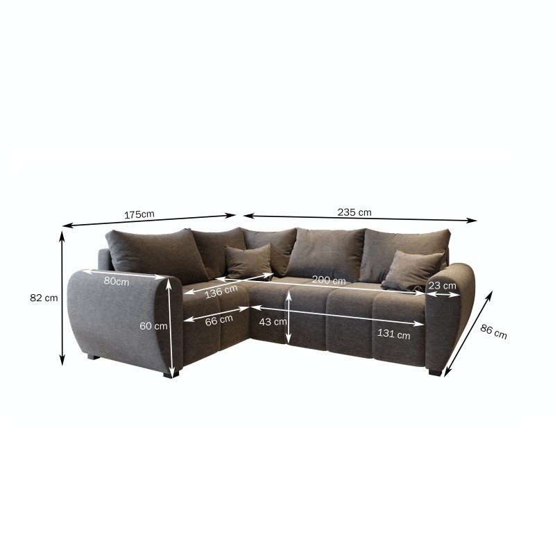 Masseno Narożnik MADISON z funkcją spania i pojemnikiem na pościel Narozniki L, Rozkładana sofa - Szary, SAWANA 05
