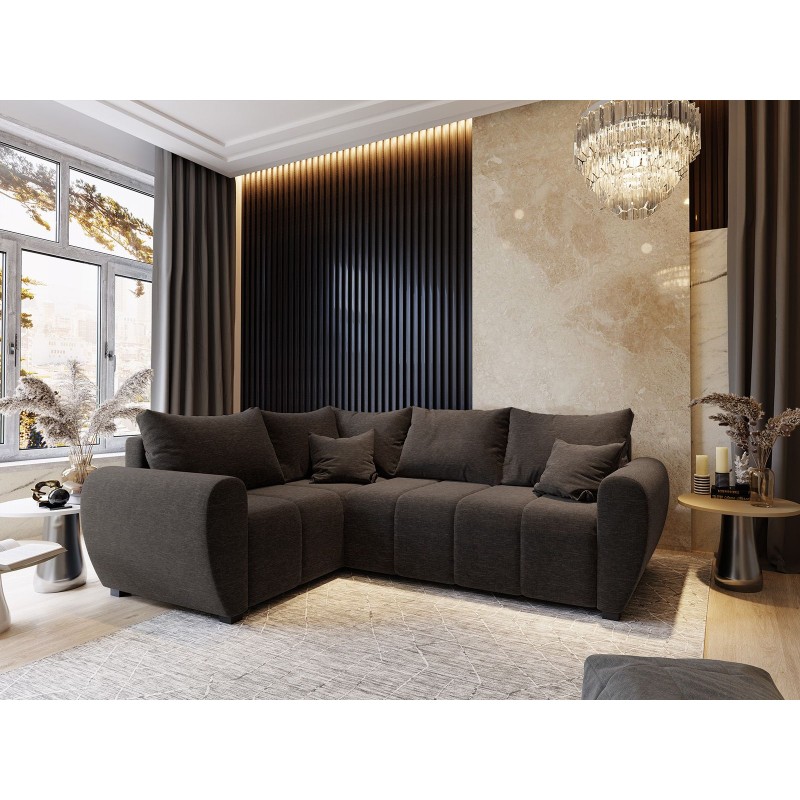 Masseno Narożnik MADISON z funkcją spania i pojemnikiem na pościel Narozniki L, Rozkładana sofa - Brązowy, SAWANA 16