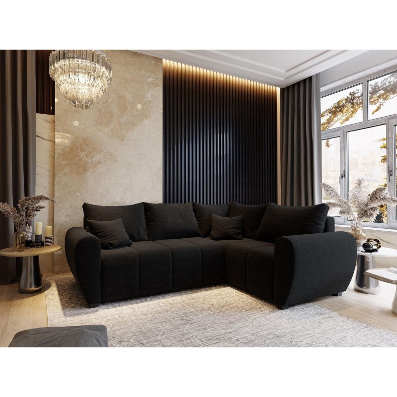 Masseno Narożnik MADISON z funkcją spania i pojemnikiem na pościel Narozniki L, Rozkładana sofa - Czarny, SAWANA 14