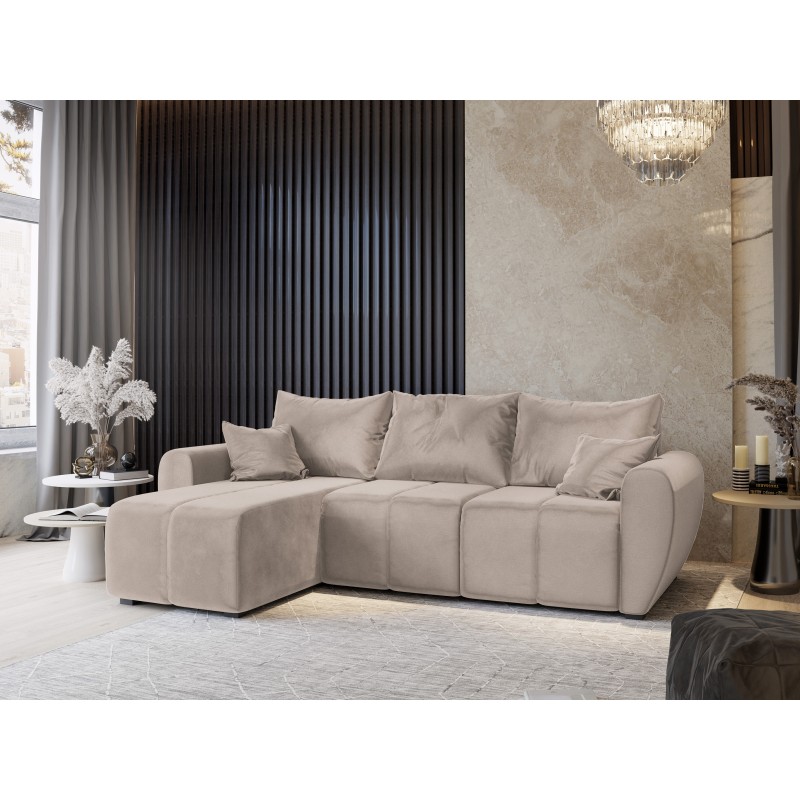 Masseno Narożnik MADISON z funkcją spania i pojemnikiem na pościel Narozniki L, Rozkładana sofa - Beżowy, PAROS 02