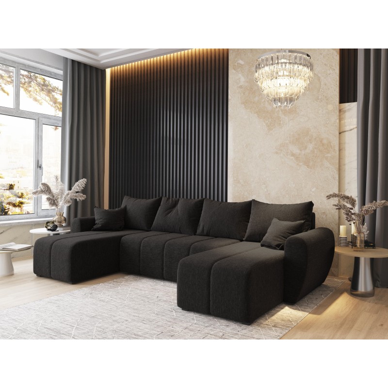 Masseno Narożnik MADISON z funkcją spania i pojemnikiem na pościel Narozniki U, Rozkładana sofa - Szary, SAWANA 05
