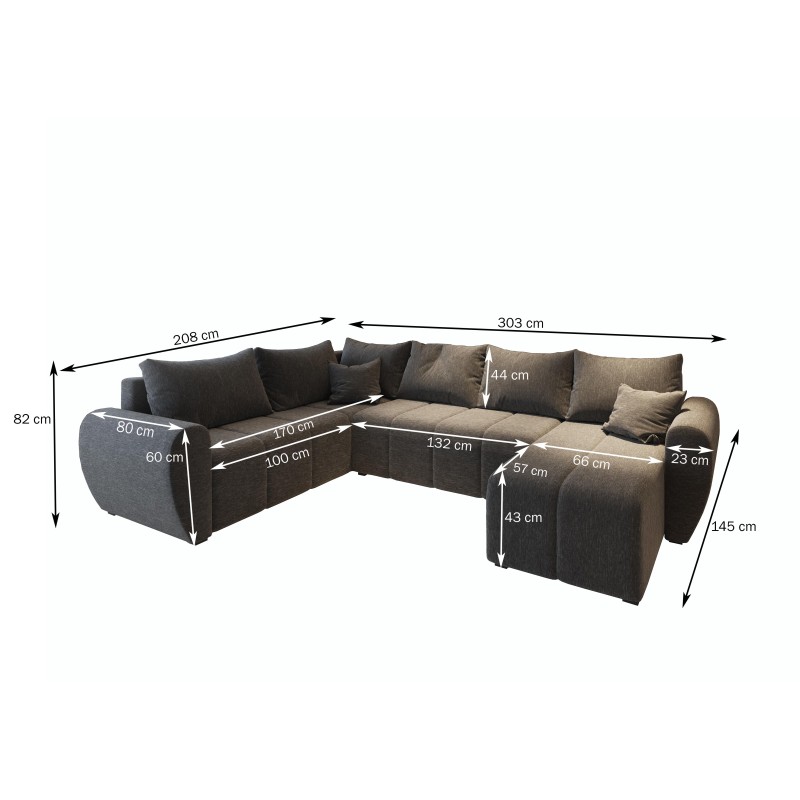 Masseno Narożnik MADISON z funkcją spania i pojemnikiem na pościel Narozniki U, Rozkładana sofa - Szary, SAWANA 05