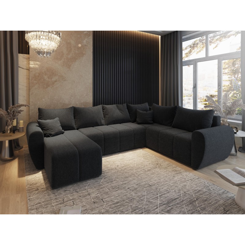 Masseno Narożnik MADISON z funkcją spania i pojemnikiem na pościel Narozniki U, Rozkładana sofa - Czarny, SAWANA 14