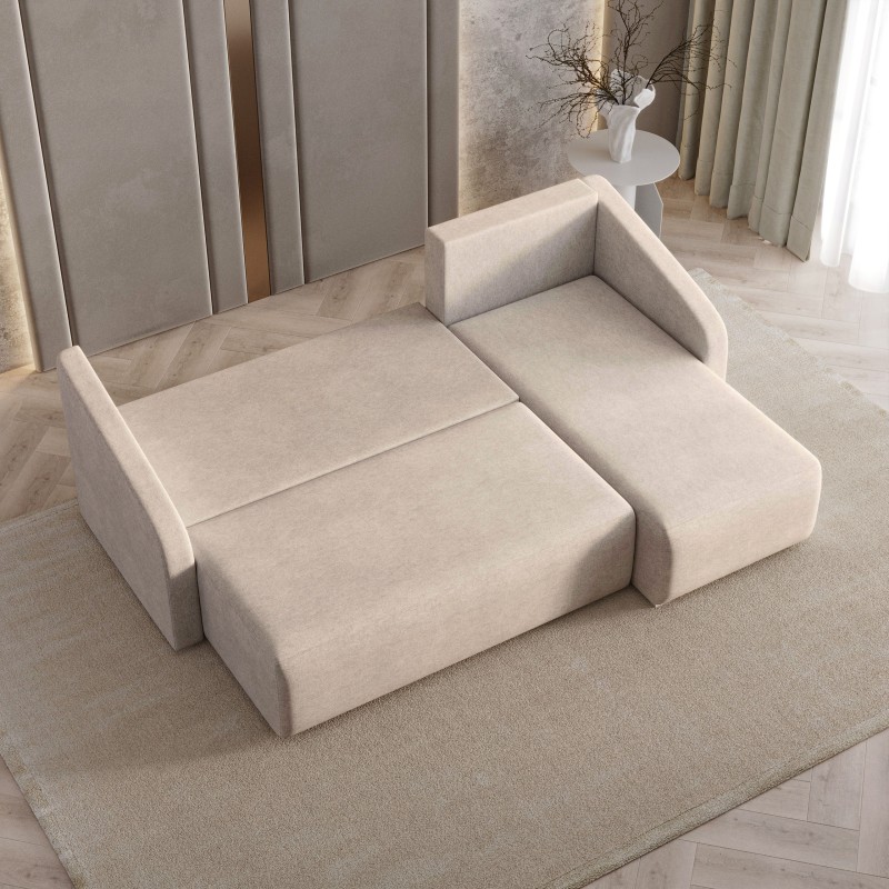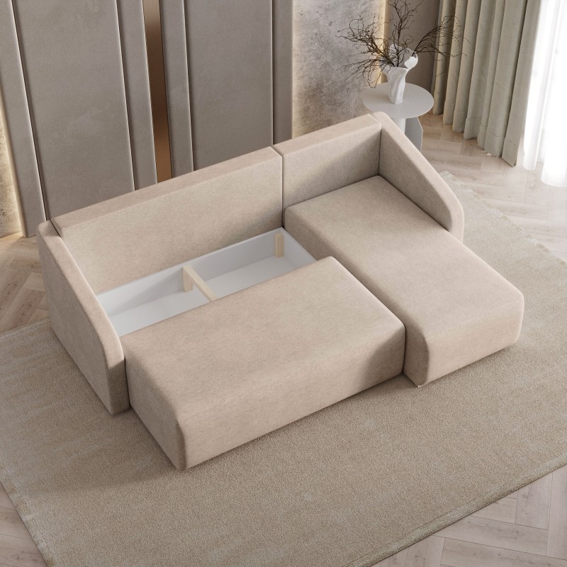 Masseno Narożnik MARELLO z funkcją spania i pojemnikiem na pościel Narozniki L, Rozkładana sofa - Beżowy, NEVE 04
