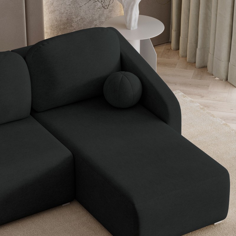 Masseno Narożnik MARELLO z funkcją spania i pojemnikiem na pościel Narozniki L, Rozkładana sofa - Czarny, NEVE 100
