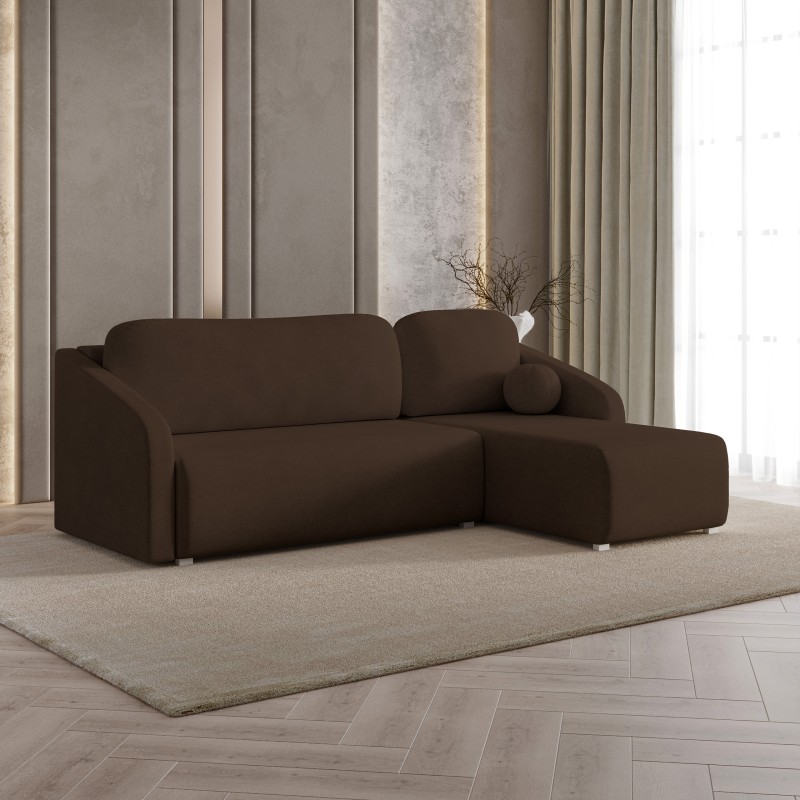 Masseno Narożnik MARELLO z funkcją spania i pojemnikiem na pościel Narozniki L, Rozkładana sofa - Brązowy, NEVE 28