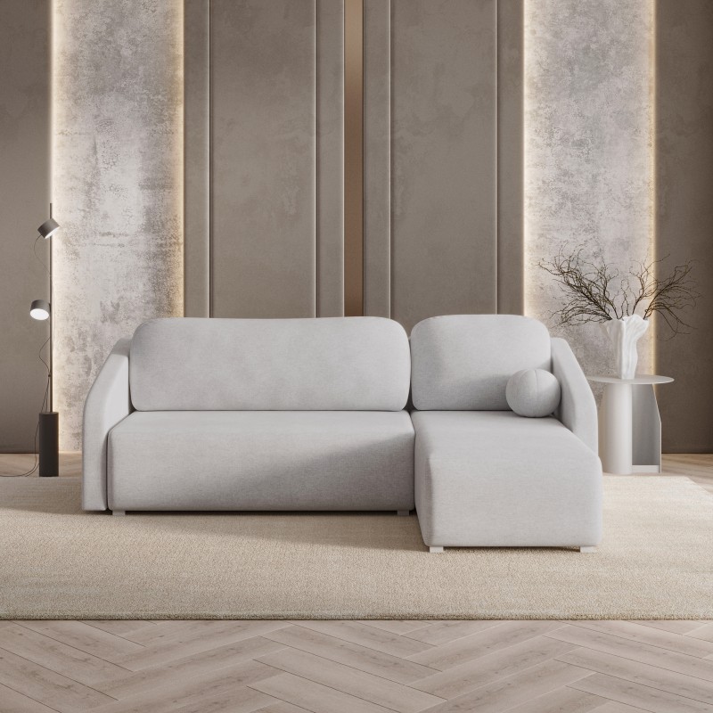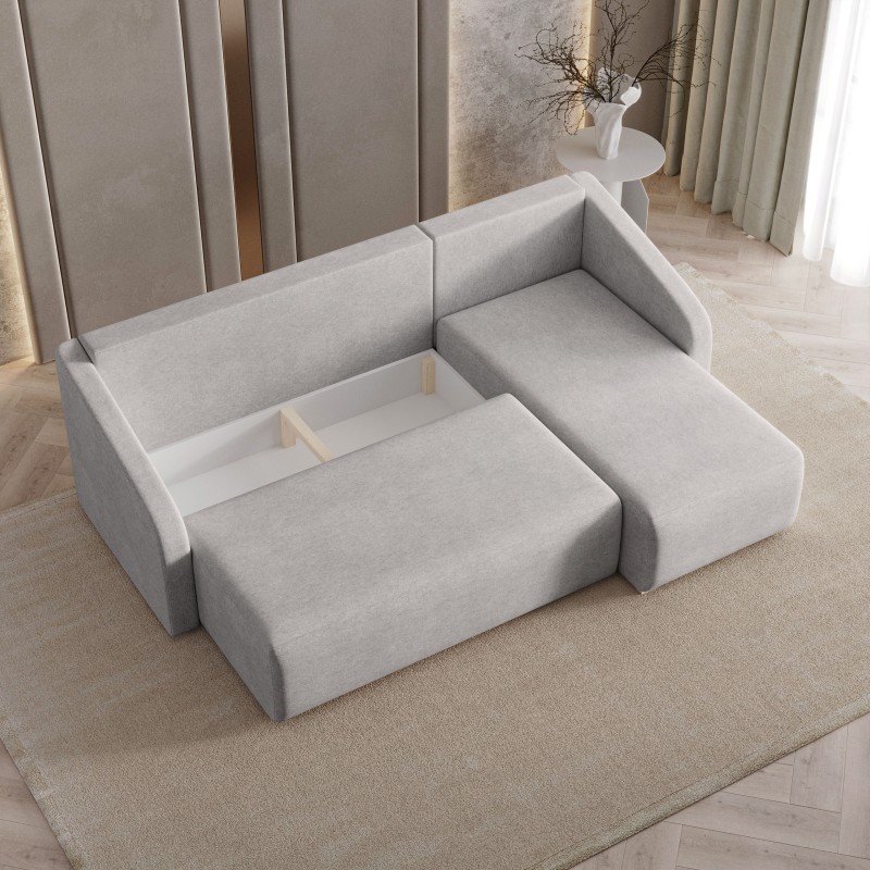 Masseno Narożnik MARELLO z funkcją spania i pojemnikiem na pościel Narozniki L, Rozkładana sofa - Jasnoszary, NEVE 83