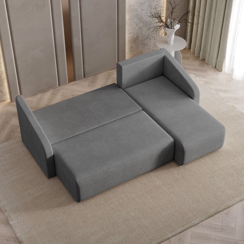 Masseno Narożnik MARELLO z funkcją spania i pojemnikiem na pościel Narozniki L, Rozkładana sofa - Szary, NEVE 90