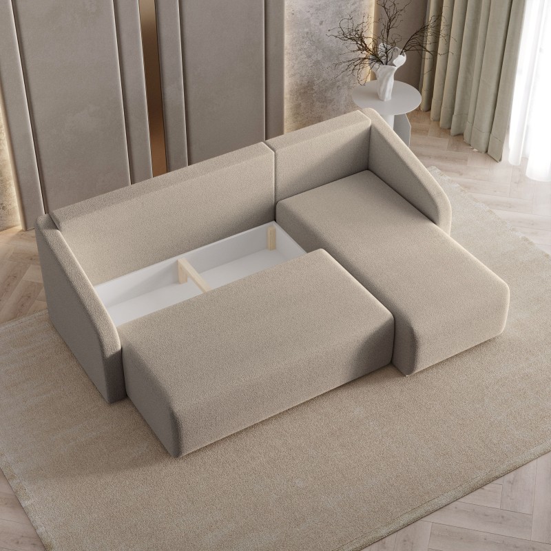 Masseno Narożnik MARELLO z funkcją spania i pojemnikiem na pościel Narozniki L, Rozkładana sofa - Beżowy, QUELLE 05