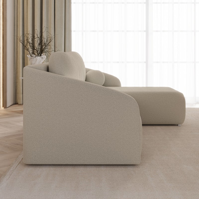 MARELLO Quelle to narożnik stworzony dla tych, którzy cenią sobie odpoczynek w komfortowych warunkach. Miękkie poduchy, designerska poduszka w formie kulki i przestronne siedzisko zamienią codzienny relaks w przyjemny rytuał.