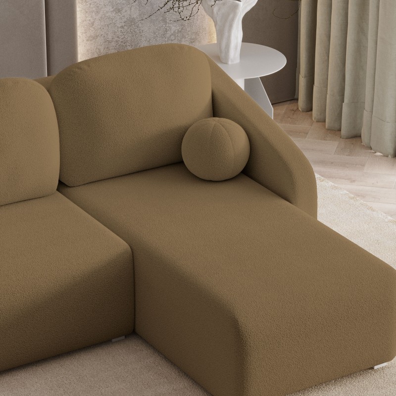 MARELLO Quelle to narożnik stworzony dla tych, którzy cenią sobie odpoczynek w komfortowych warunkach. Miękkie poduchy, designerska poduszka w formie kulki i przestronne siedzisko zamienią codzienny relaks w przyjemny rytuał.