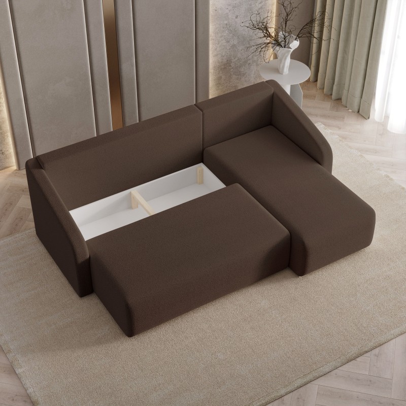 Masseno Narożnik MARELLO z funkcją spania i pojemnikiem na pościel Narozniki L, Rozkładana sofa - Brązowy, QUELLE 25