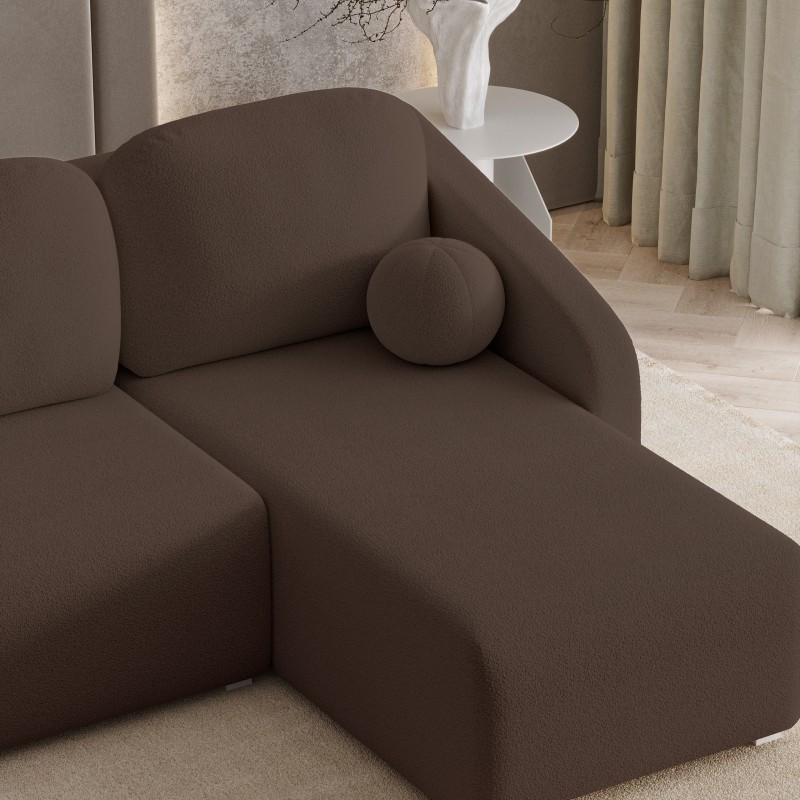 MARELLO Quelle to narożnik stworzony dla tych, którzy cenią sobie odpoczynek w komfortowych warunkach. Miękkie poduchy, designerska poduszka w formie kulki i przestronne siedzisko zamienią codzienny relaks w przyjemny rytuał.