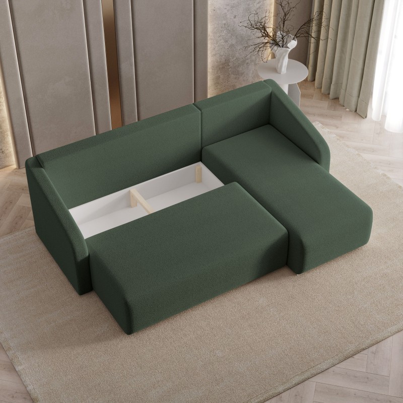 Masseno Narożnik MARELLO z funkcją spania i pojemnikiem na pościel Narozniki L, Rozkładana sofa - Zielony, QUELLE 37