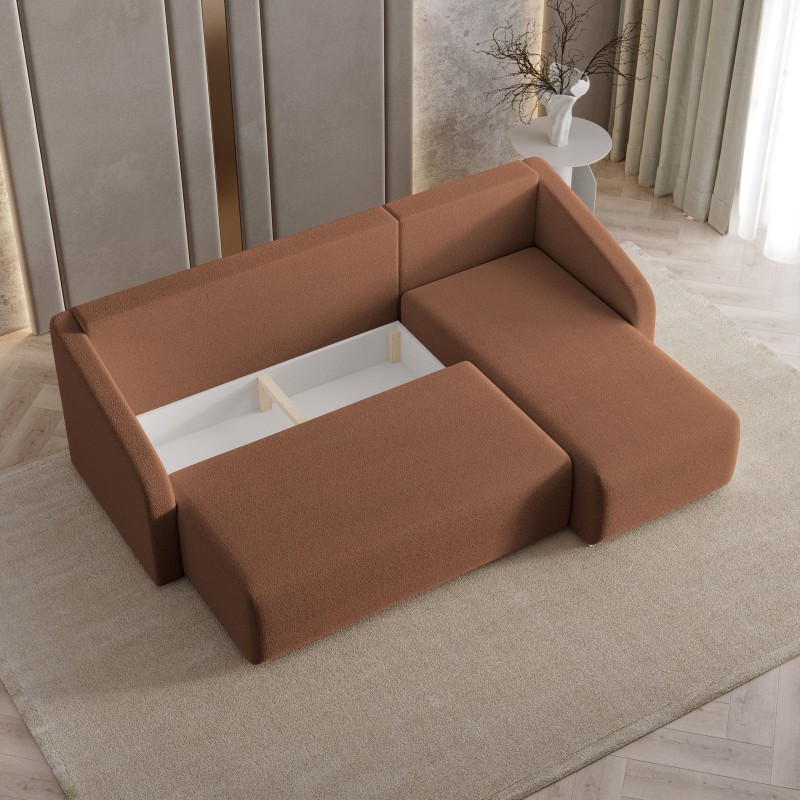 Masseno Narożnik MARELLO z funkcją spania i pojemnikiem na pościel Narozniki L, Rozkładana sofa - Miedziany, QUELLE 54