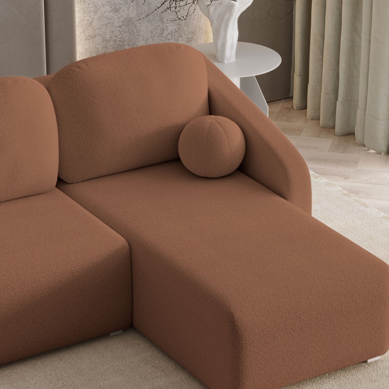 MARELLO Quelle to narożnik stworzony dla tych, którzy cenią sobie odpoczynek w komfortowych warunkach. Miękkie poduchy, designerska poduszka w formie kulki i przestronne siedzisko zamienią codzienny relaks w przyjemny rytuał.