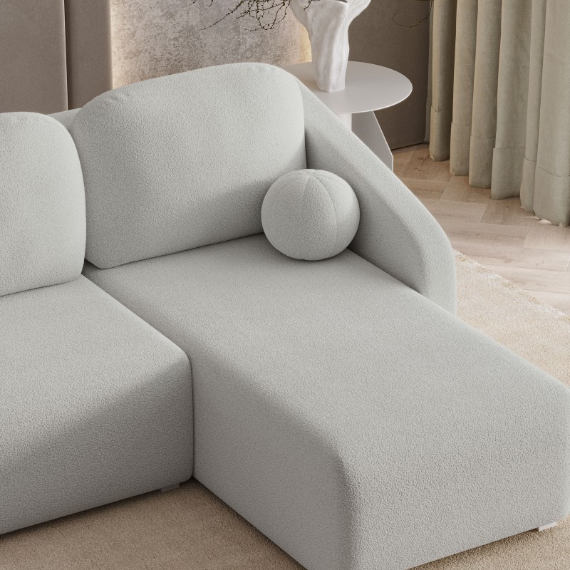 MARELLO Quelle to narożnik stworzony dla tych, którzy cenią sobie odpoczynek w komfortowych warunkach. Miękkie poduchy, designerska poduszka w formie kulki i przestronne siedzisko zamienią codzienny relaks w przyjemny rytuał.