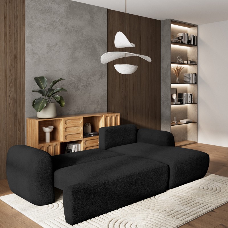 Masseno Narożnik MODENZA z funkcją spania i pojemnikiem na pościel Narozniki L, Rozkładana sofa - Czarny, NOW OR NEVER 100