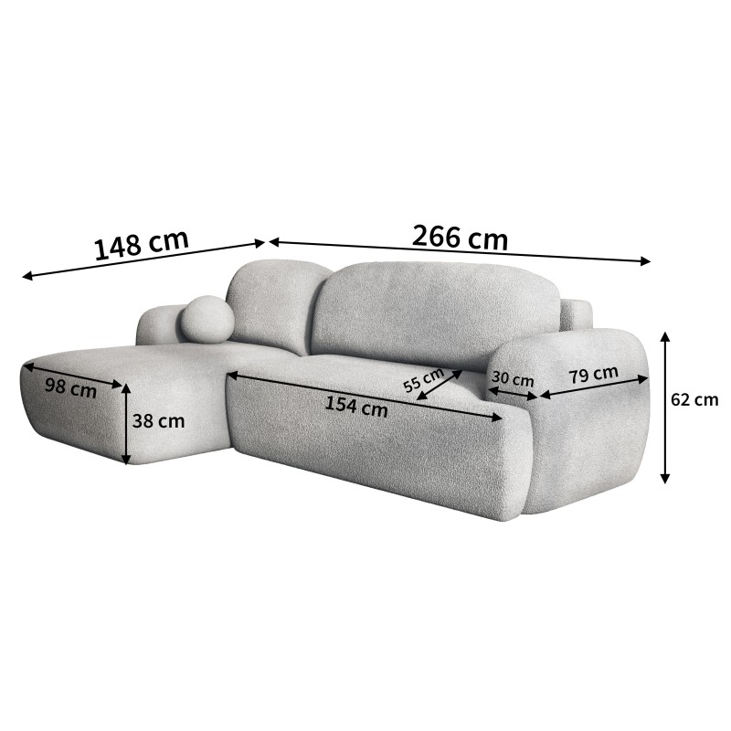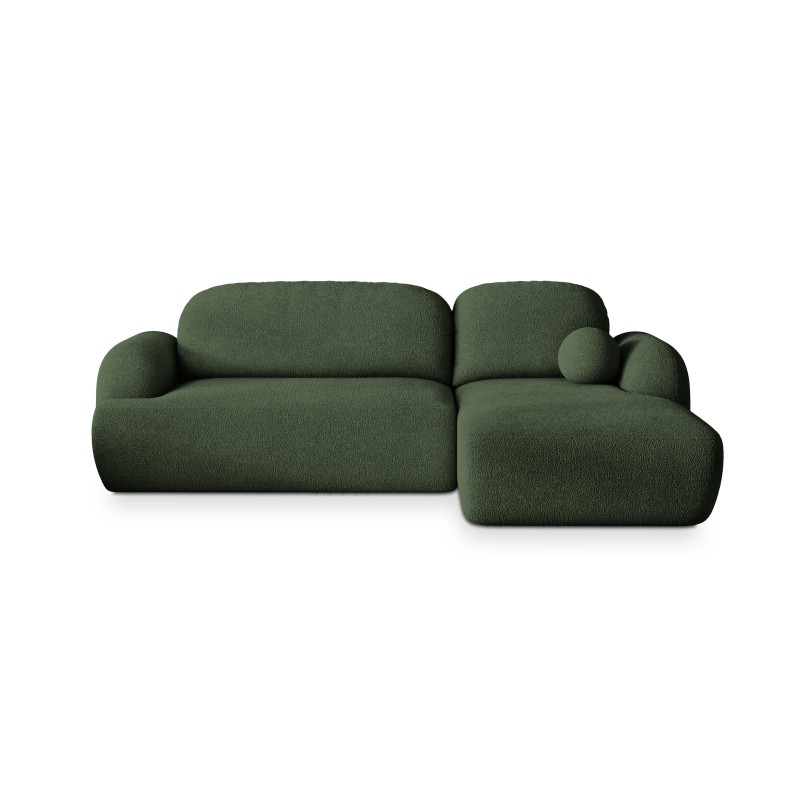 Tkanina NOW OR NEVER (boucle) ma wyjątkowo miękką, pętelkową strukturę, jest odporna na ścieranie i łatwa w czyszczeniu – dzięki czemu narożnik przez lata zachowa świetny wygląd. To połączenie luksusowej estetyki i codziennej praktyczności.