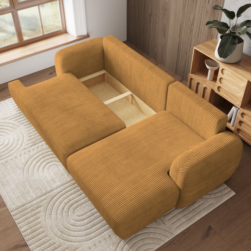 Masseno Narożnik MODENZA z funkcją spania i pojemnikiem na pościel Narozniki L, Rozkładana sofa - Żółty, POSO 01