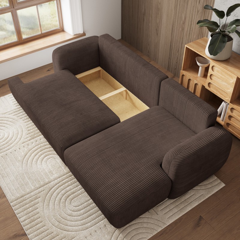 Masseno Narożnik MODENZA z funkcją spania i pojemnikiem na pościel Narozniki L, Rozkładana sofa - Brązowy, POSO 06