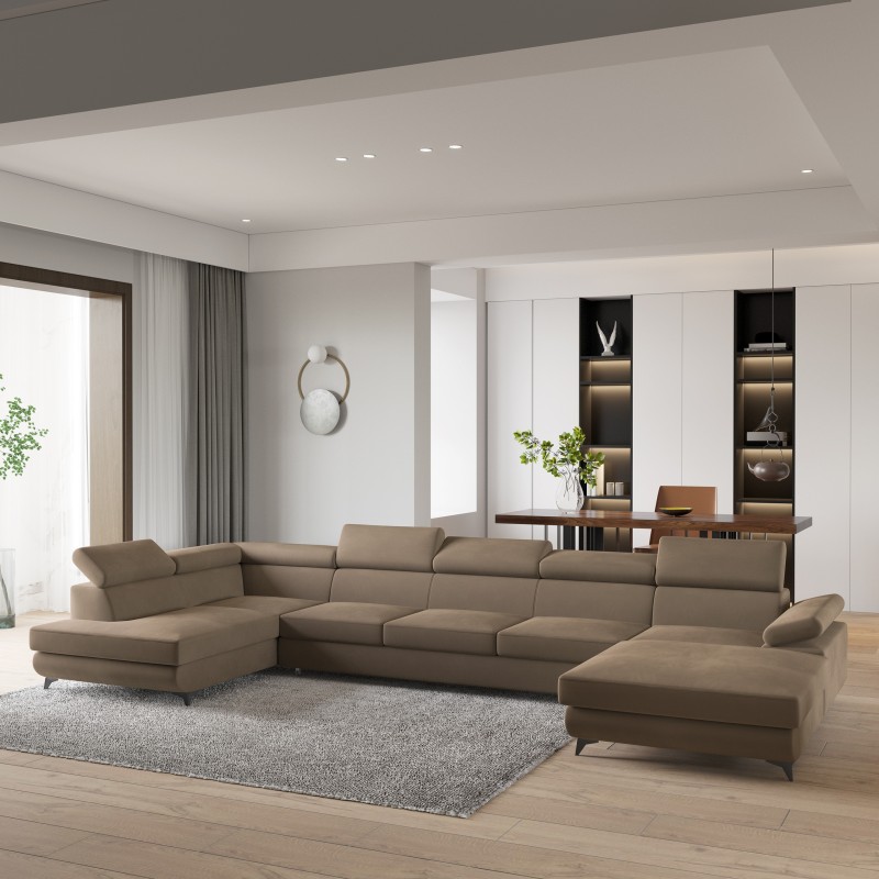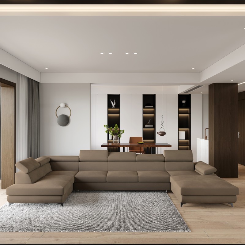 Jeśli szukasz narożnika, który pomieści całą rodzinę, zachwyci funkcjonalnością i wprowadzi do wnętrza nutę luksusu – Montiva jest stworzony właśnie dla Ciebie. To monumentalna konstrukcja, która nie tylko robi wrażenie rozmiarem, ale też perfekcyjnie łączy nowoczesną elegancję z codzienną wygodą.