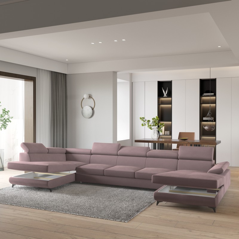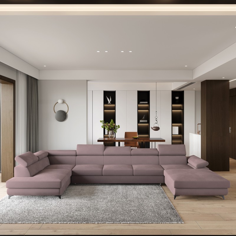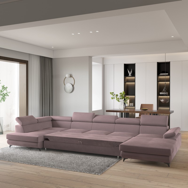 Masseno Narożnik MONTIVA z funkcją spania i pojemnikiem na pościel Narozniki U, Rozkładana sofa - Wrzosowy, MONOLITH 62