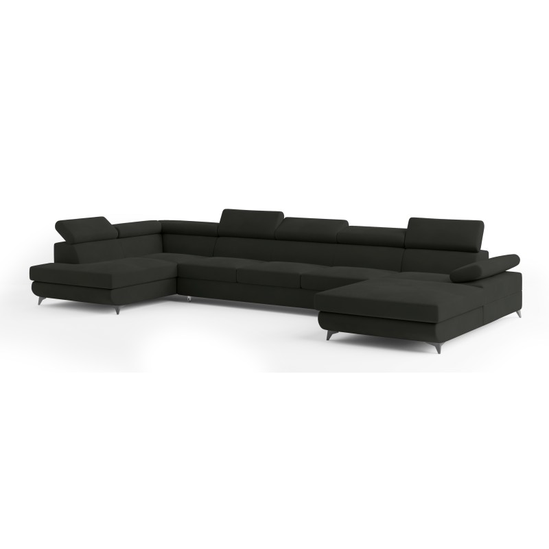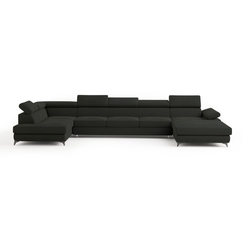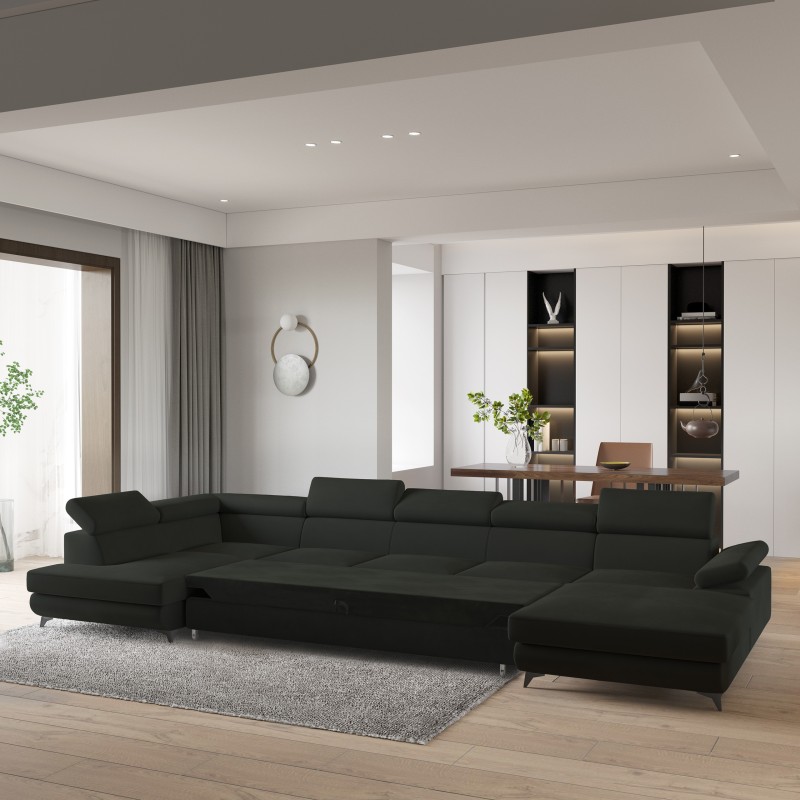 Masseno Narożnik MONTIVA z funkcją spania i pojemnikiem na pościel Narozniki U, Rozkładana sofa - Czarny, MONOLITH 95